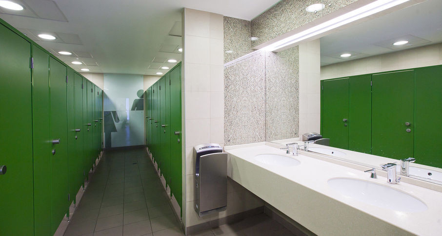 Санузлы и раздевалки общего пользования принято разграничивать на индивидуальные зоны. Это гигиенично и комфортно для посетителей. Для зонирования монтируют сантехнические кабины из легких конструкций. Это выгодно и удобно:
