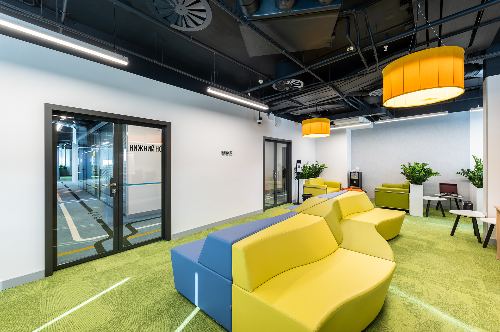 Этот проект отлично показывает возможности Nayada по организации зонирования современных офисных помещений с помощью большого ассортимента высокотехнологичных решений.