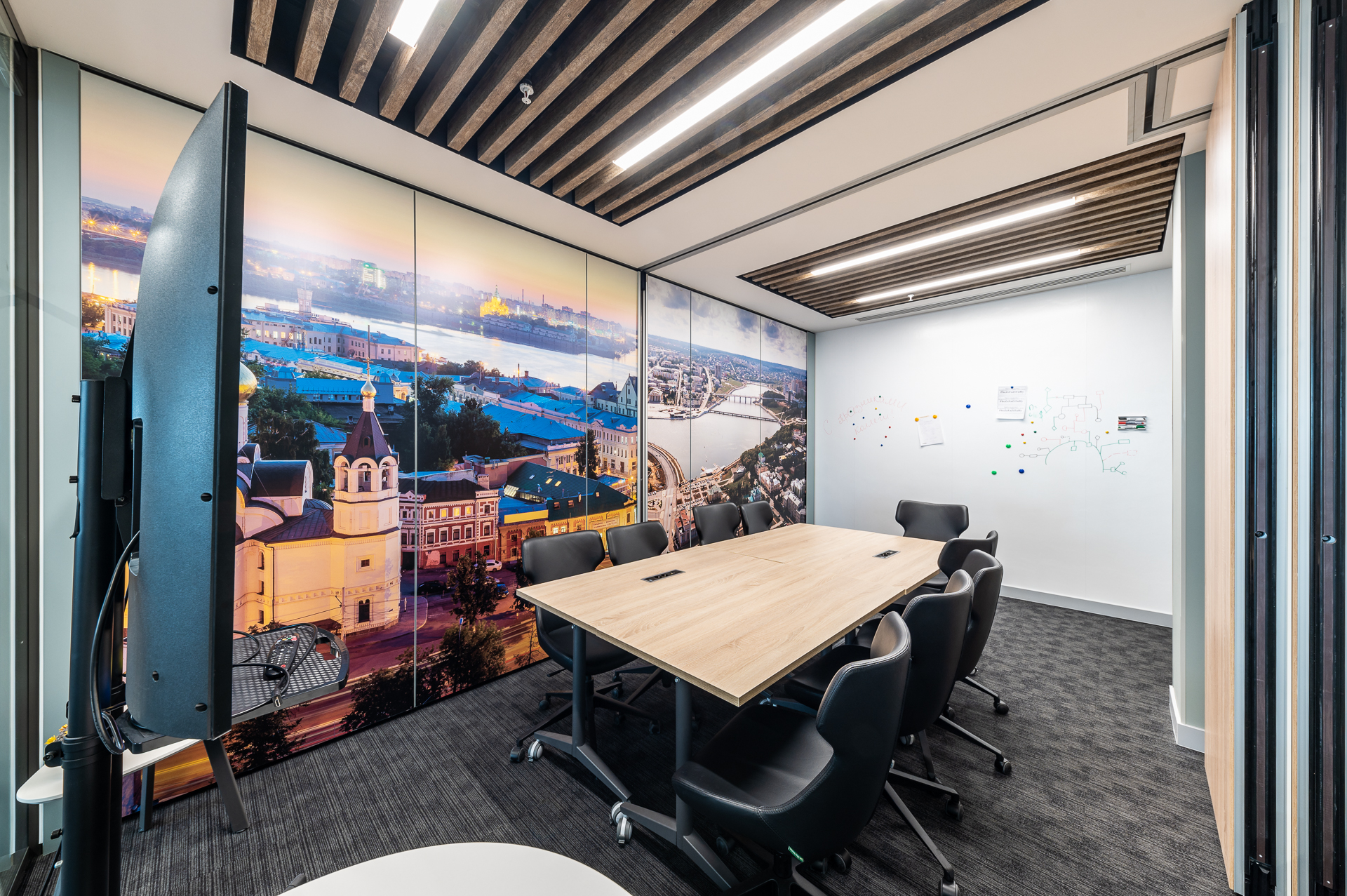 Проект компании Nayada по установке перегородок NAYADA-Twin, раздвижных перегородок NAYADA-SmartWall H7, стеклянных дверей NAYADA-Magic, дверей Intero W, противопожарных дверей NAYADA EIW-30, дверей NAYADA Doors с глухим полотном в АО «ГНИВЦ»